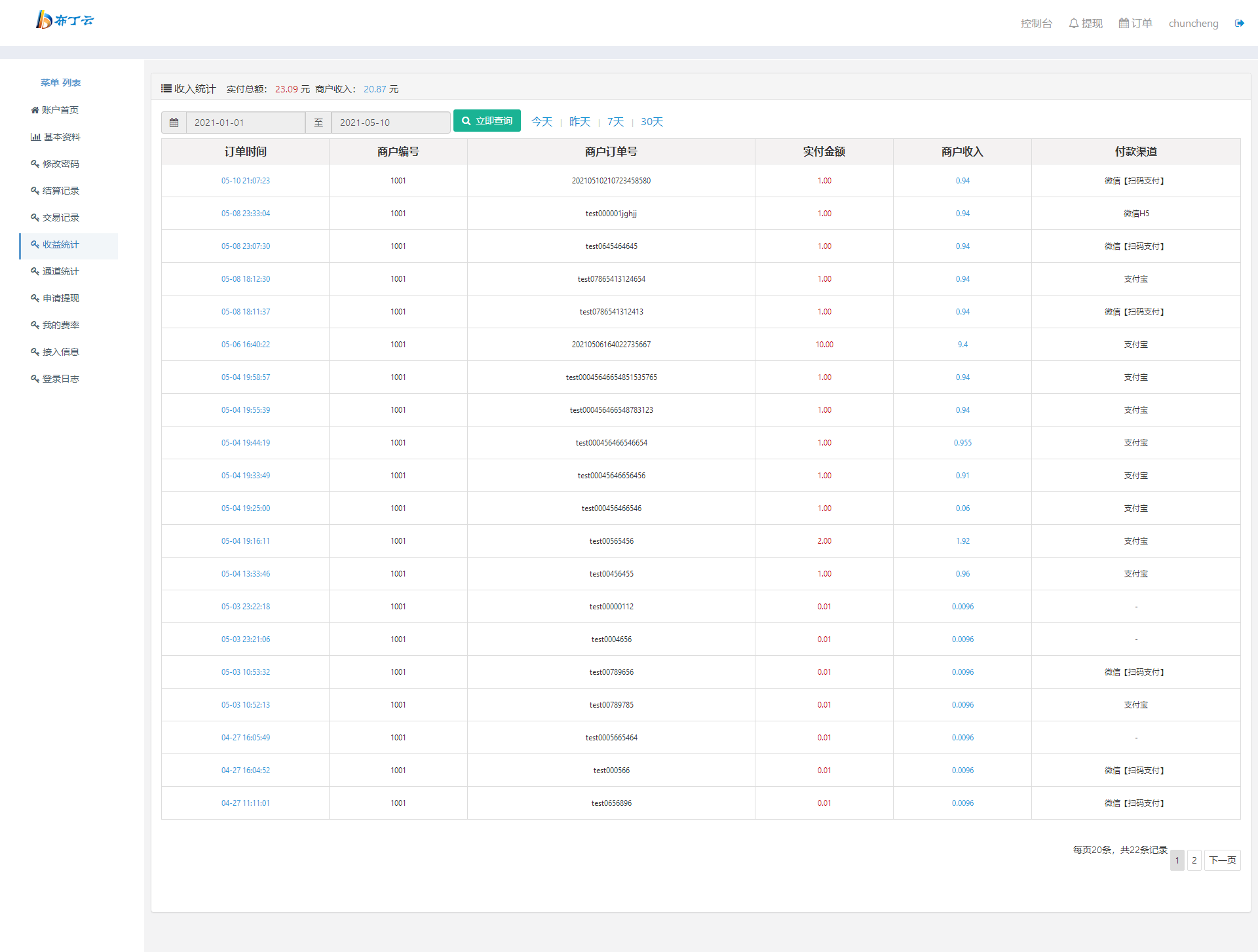 2021/5/6:增加后台商户以及代理数据统计项(账目更清晰)增加商户费率配置说明以及商户后台自适应等等...细节优化