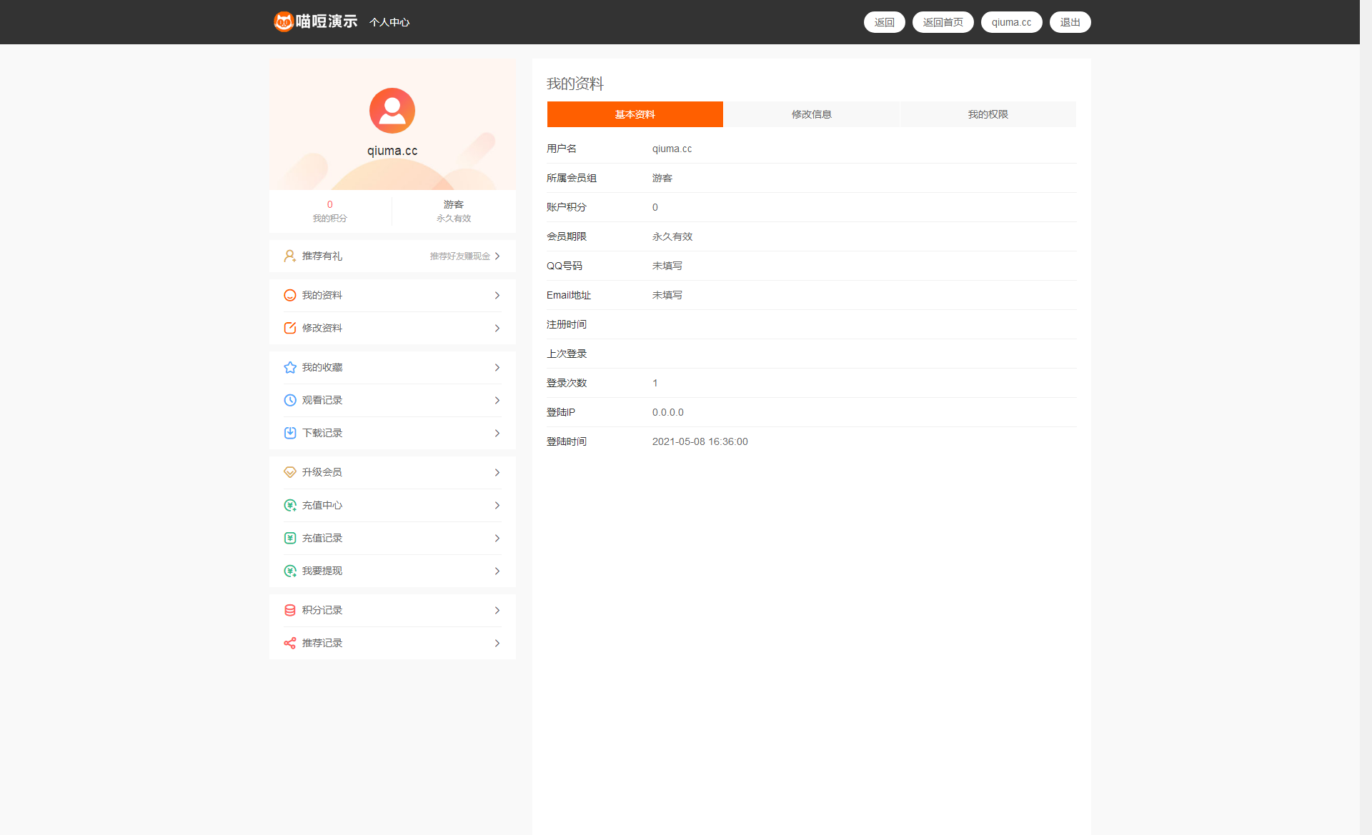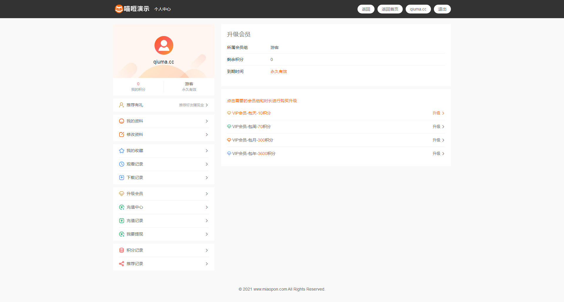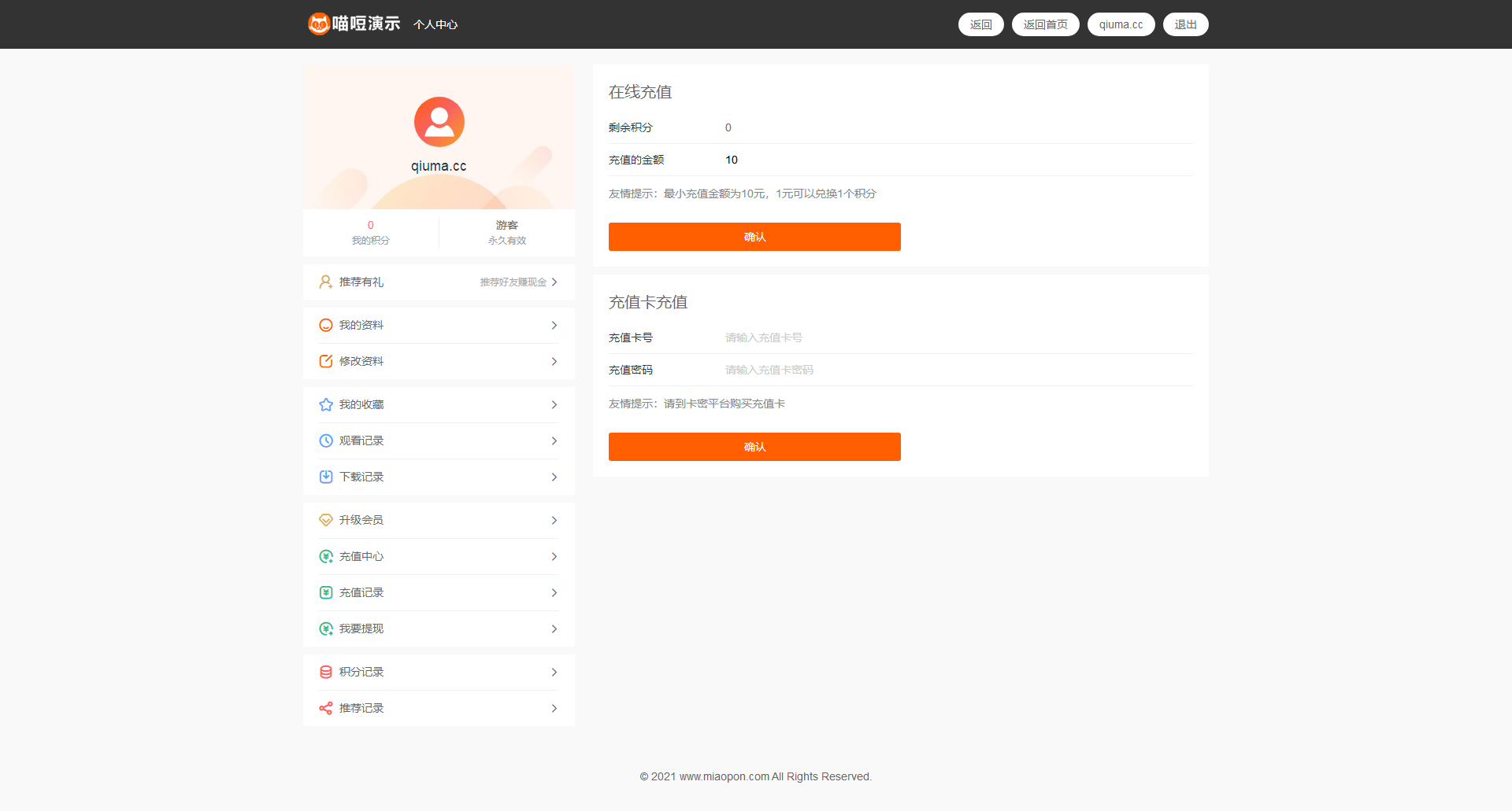 19.积分:可对每部视频进行积分设置及消费制度
